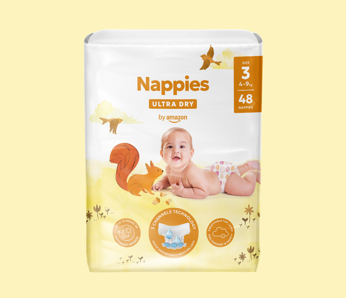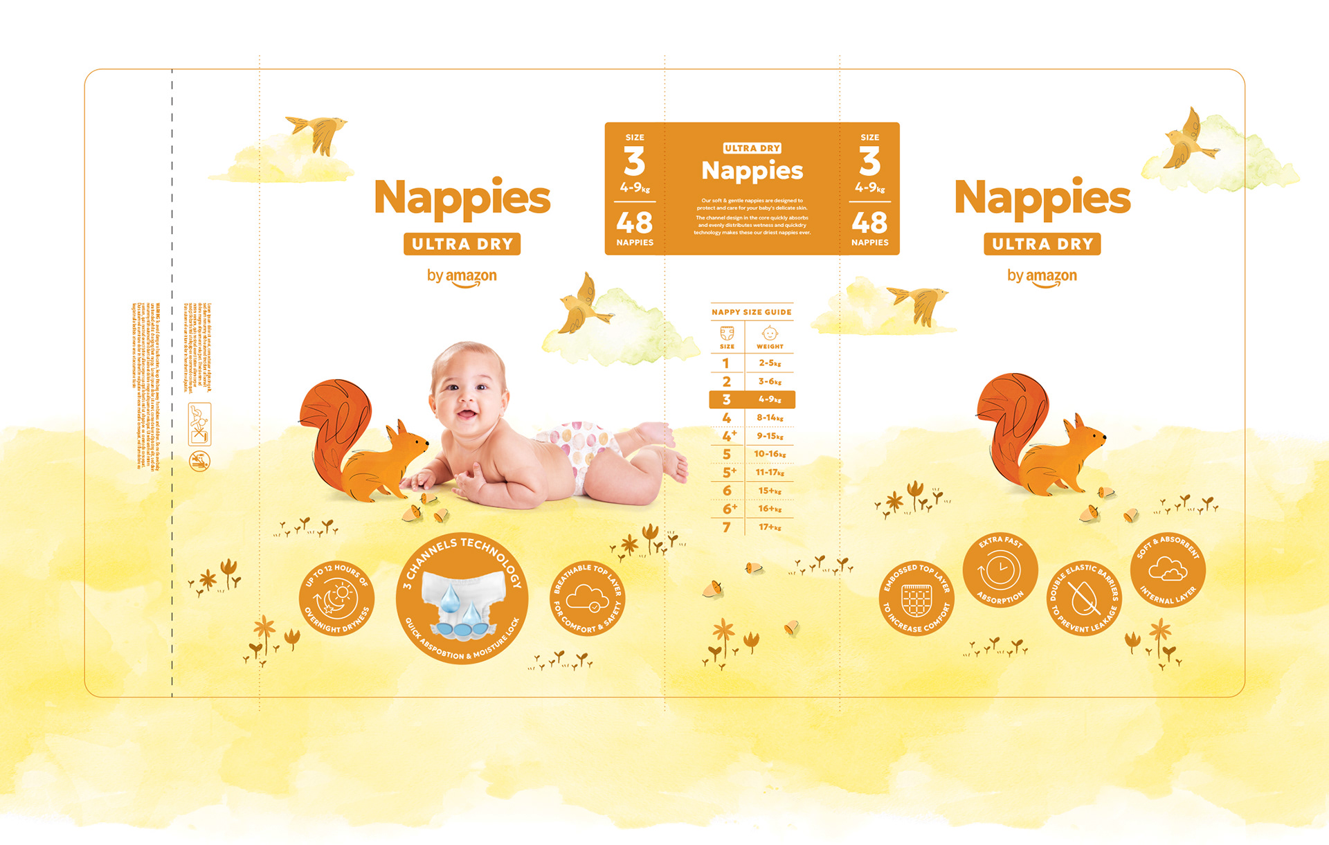 With the ‘by Amazon’ private label groceries brand successfully established, the next step was to bring all other Amazon product ranges under the same brand umbrella. As their existing 'Mama Bear' brand was already extremely popular we wanted to draw on that trusted, playful design while bringing it into the ‘by Amazon’ world.